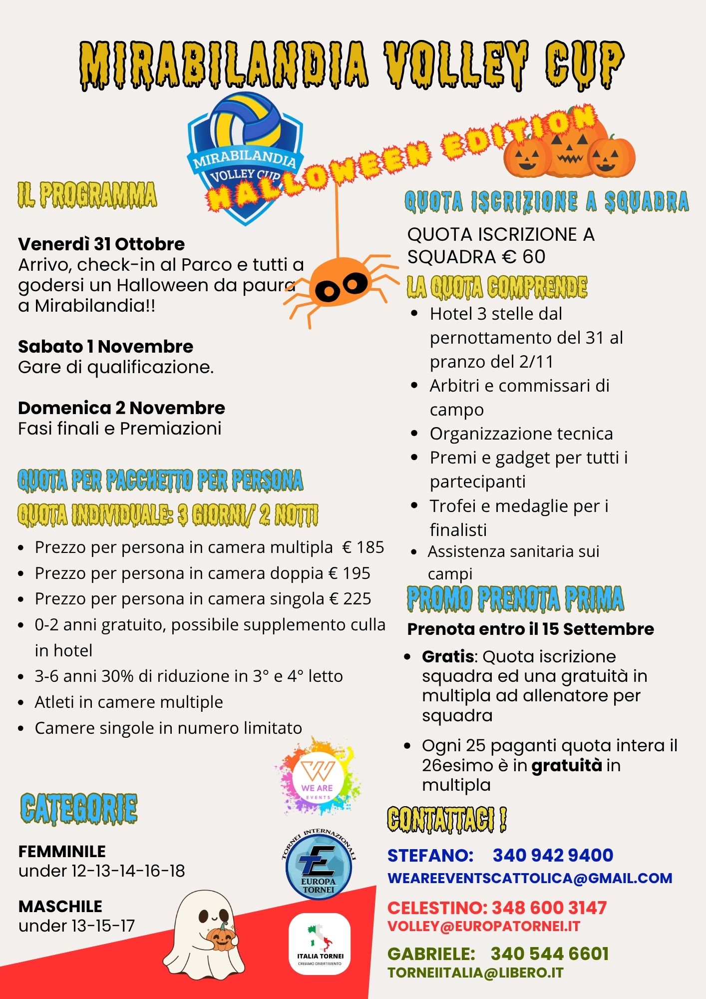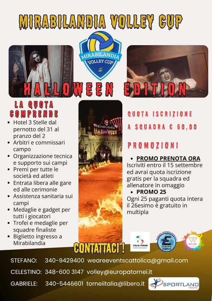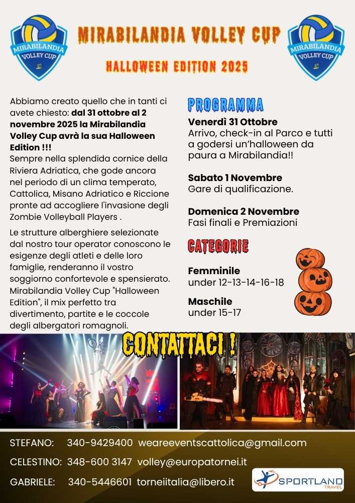 Abbiamo creato quello che in tanti ci avete chiesto: dal 31 ottobre al 2 novembre 2025 la Mirabilandia Volley Cup avrà la sua Halloween Edition !!!